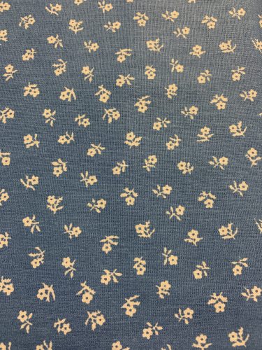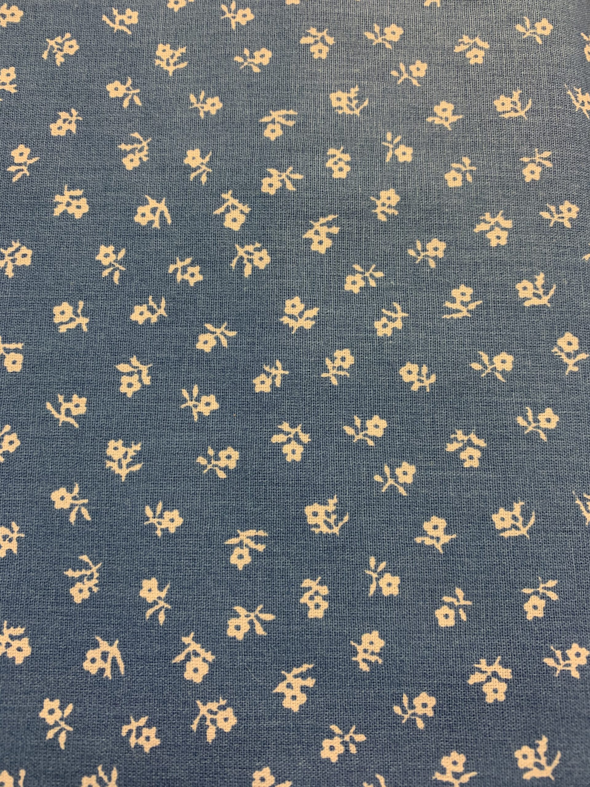 small white flowers on cornflower blue background 100% cotton